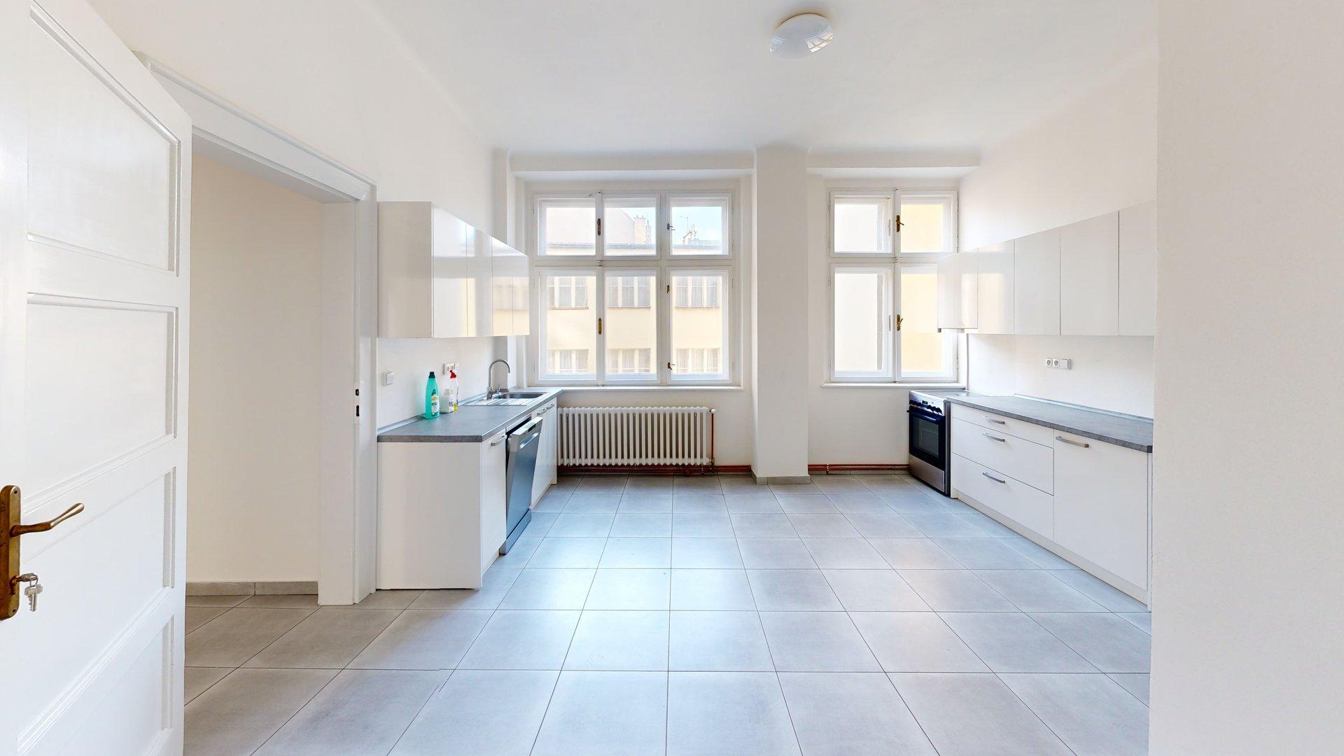 V zastoupení hlavního města Prahy nabízíme k dlouhodobému pronájmu krásný a světlý byt s dispozicí 4+1, upravený na 3+1, o celkové výměře 142 m2, který se nachází ve 2. patře historické budovy v centru Prahy 1, v ulici Melantrichova. Byt je nezařízený, v hale se nachází vestavěné skříně. Dispozičně je byt rozdělen na tři průchozí místnosti, halu, kuchyň, koupelnu a dvě toalety, viz plánek. Kuchyň je vybavena spotřebiči a byt má svůj bojler pro ohřev vody, vytápění je zajištěno z plynové kotelny objektu. V domě je výtah. V ceně nájmu nejsou zahrnuty měsíční poplatky ve výši 2.000 Kč/os. + vlastní spotřeba el. energie. Objekt se nachází v samém centru Prahy. Byt je volný a nabízen k okamžitému pronájmu. Prostory nelze nabízet pro krátkodobé pronájmy a k pronájmu třetím osobám.