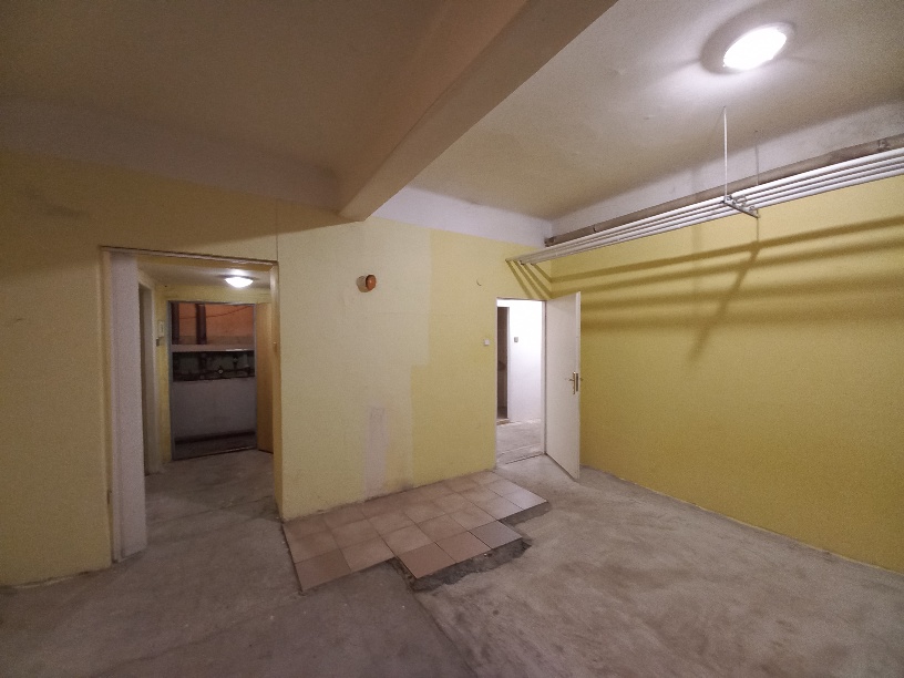MČ Praha 4 rozhodla zveřejnit záměr pronajmout tuto volnou nebytovou jednotku pro využití jako sklad, popř. i jinak v souladu s územním plánem s tím, že nájemce zajistí vlastním nákladem změnu stavebně technického účelu užívání prostoru*, za minimální nájemné ve výši 150 Kč/m²/měsíc bez DPH. Prostor je v horším technickém stavu. Je vybaven sprchovým koutem, umyvadlem a kuchyňskou linkou. Prostor není vytápěn. Je potřeba provést kontrolu rozvodů elektroinstalace, opravy zdí, podlah a obkladů, vymalovat. Výměra jednotlivých místností je 65,9 m². Výměra dle prohlášení vlastníka (tj. včetně půdorysné plochy všech svislých nosných i nenosných konstrukcí uvnitř jednotky) je 72,6 m².