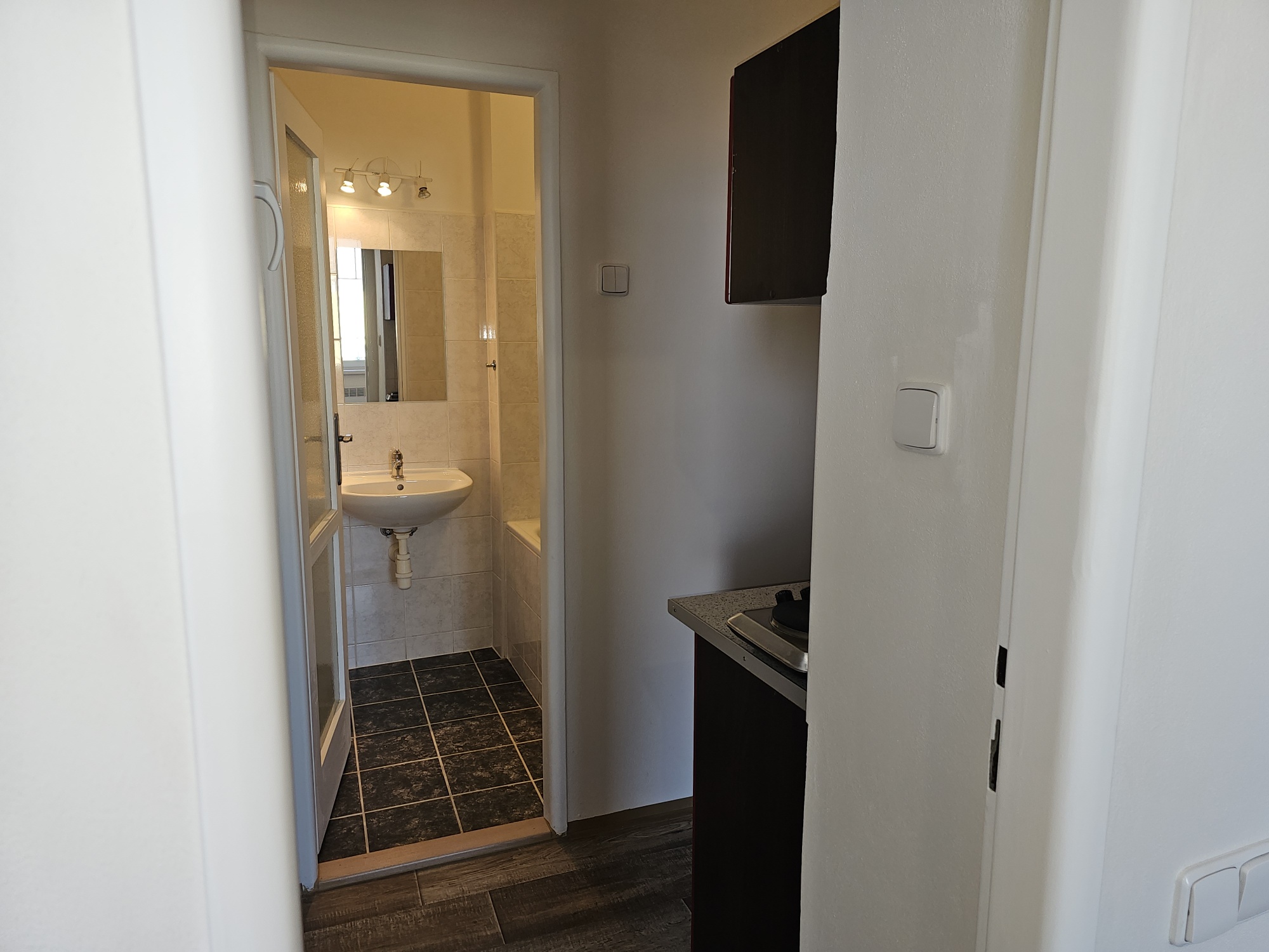 The apartment of one room and with kitchenette is located on the 5th floor of the house without elevator. Heating of the apartment is local electric - direct heating, water heating is solved by electric boiler. The windows are plastic, PVC floor, bathroom and toilet tiles. The apartment is equipped with a kitchen and an electric double cooker. The bathroom has a bathtub with a bathtub faucet, a sink with a faucet and a boiler. The apartment is not wheelchair accessible. The apartment has a terrace and a cellar. The functionality of the apartment was provided at the expense of the Municipality of Prague 4. Number of people appropriate to the size of the apartment - 2. Estimated amount of utility bills approx. 1 330 CZK/month/2 persons.