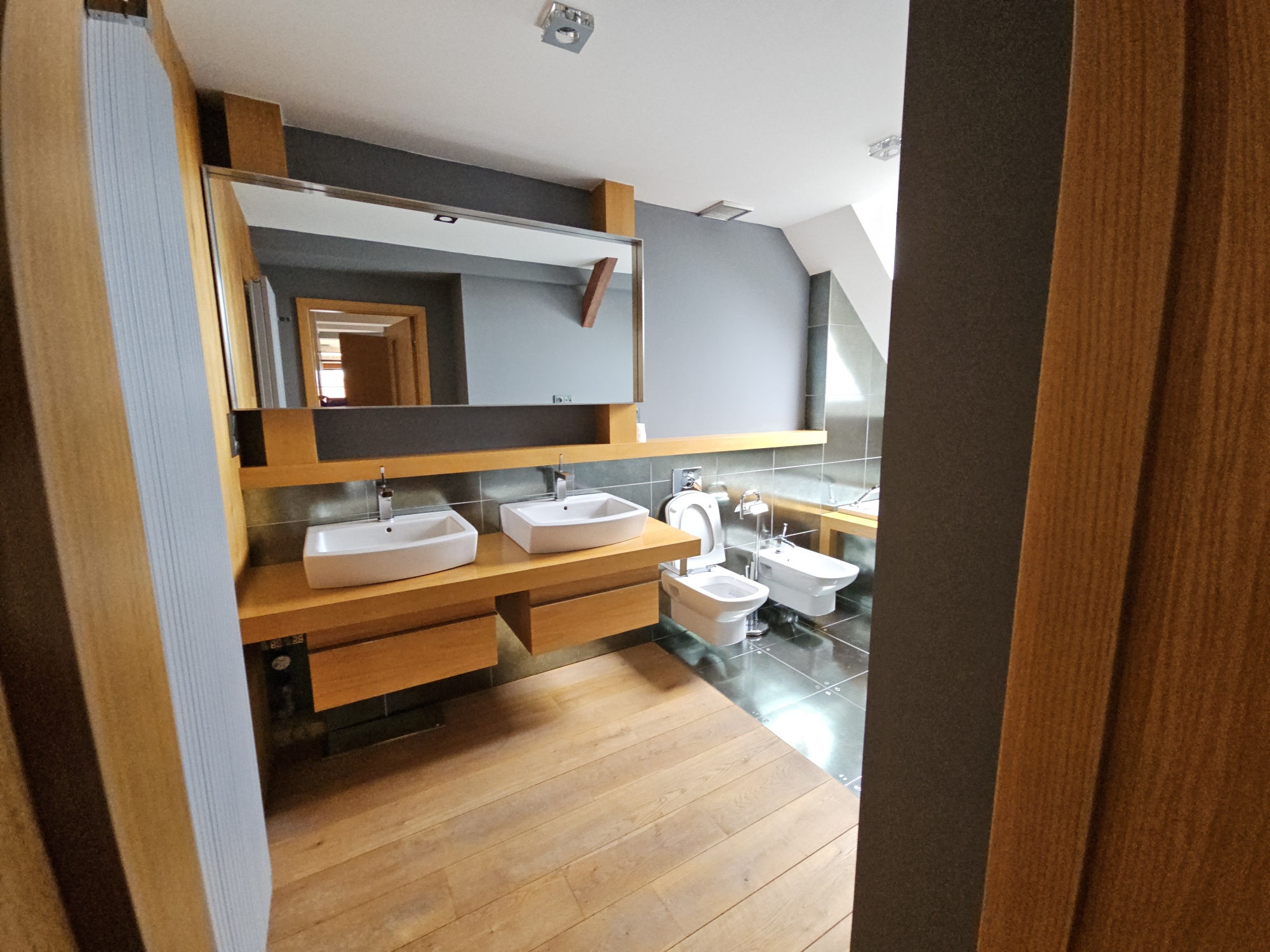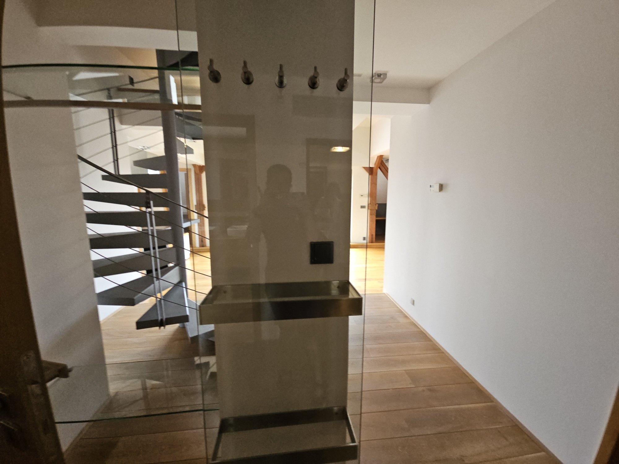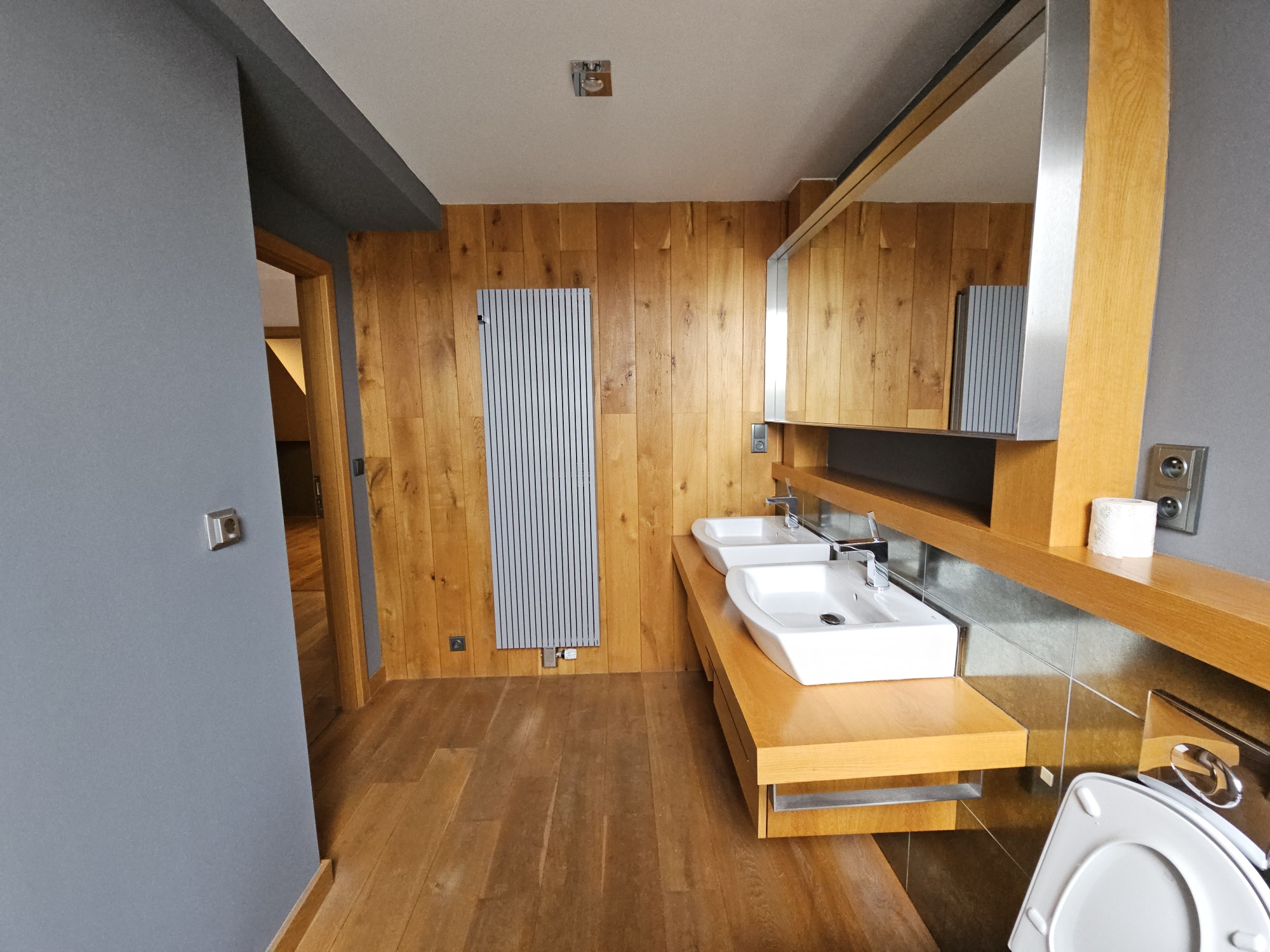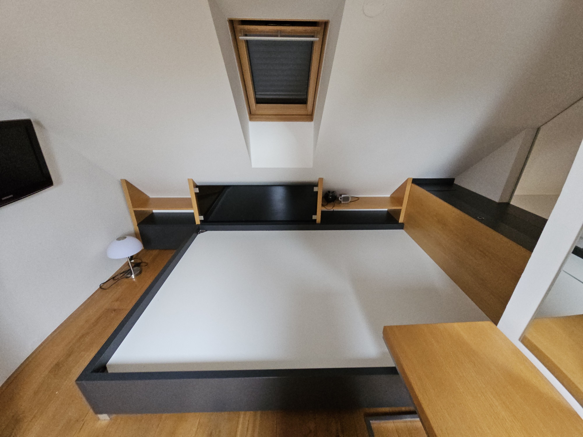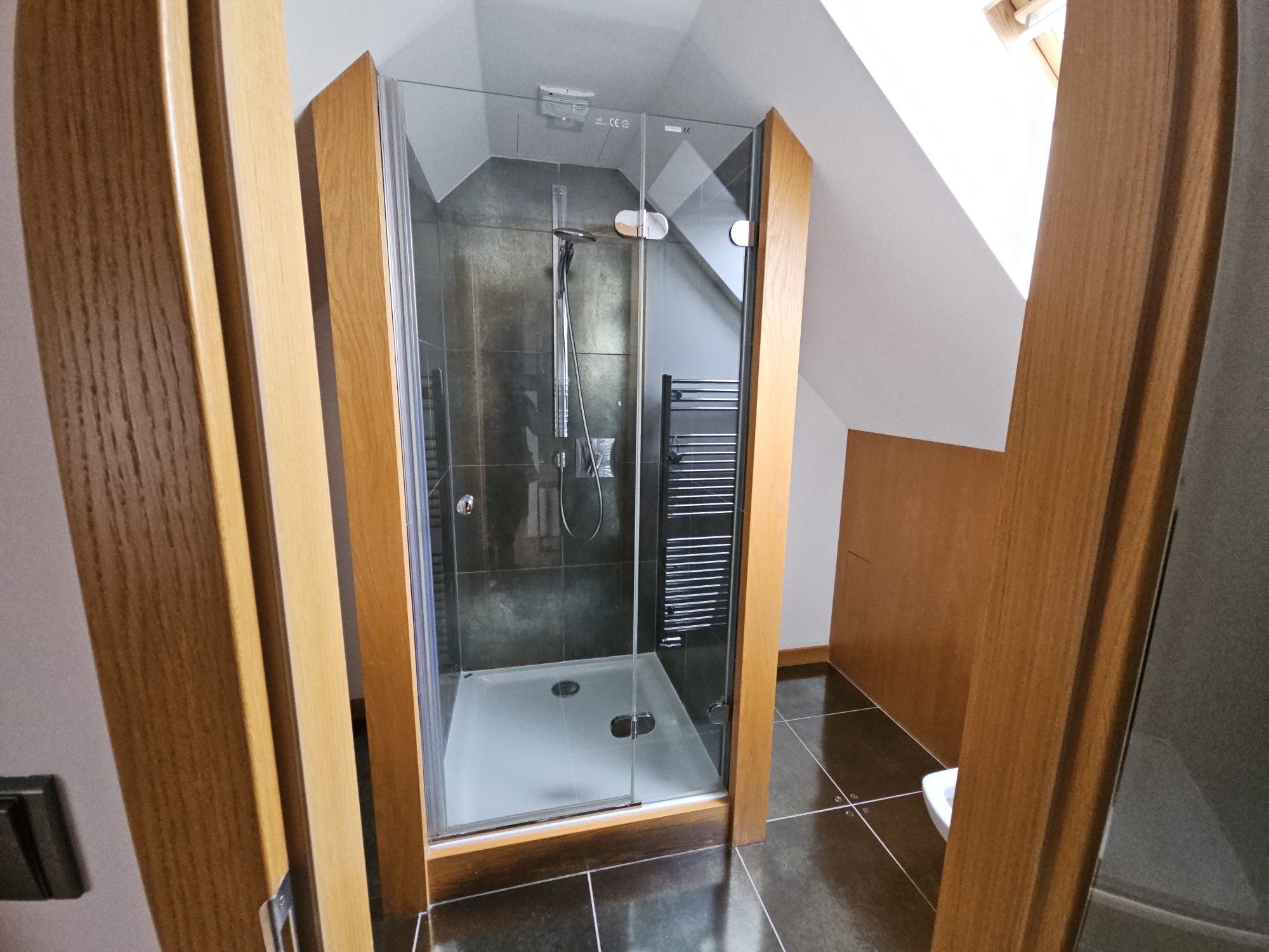 Apartment 3 + kk with accessories (duplex apartment in the attic - built-in attic apartment) is located on the 4th floor of the house without elevator. Heating of the apartment and water heating - gas floor heating (boiler). Windows are plastic, floors wood, tiles and PVC. The apartment is equipped with kitchen, electric stove with hob and extractor hood, after the previous tenant American refrigerator, built-in wardrobes, 2x beds and air conditioning in the apartment. In the larger bathroom there is a bath with mixer tap, 2x washbasin with mixer tap, PET ladder + electric underfloor heating, toilet and bidet, PET boiler, in the smaller bathroom in the maisonette there is a shower with mixer tap, washbasin, toilet and 2x heating ladder. The apartment is not wheelchair accessible. The apartment has a terrace accessible from the living room kitchen. The functionality of the apartment was ensured at the expense of the Prague 4 Municipality. Number of persons proportional to the size of the apartment - 5. Estimated amount of utility bills approx. 3 225 CZK/month/5 persons.