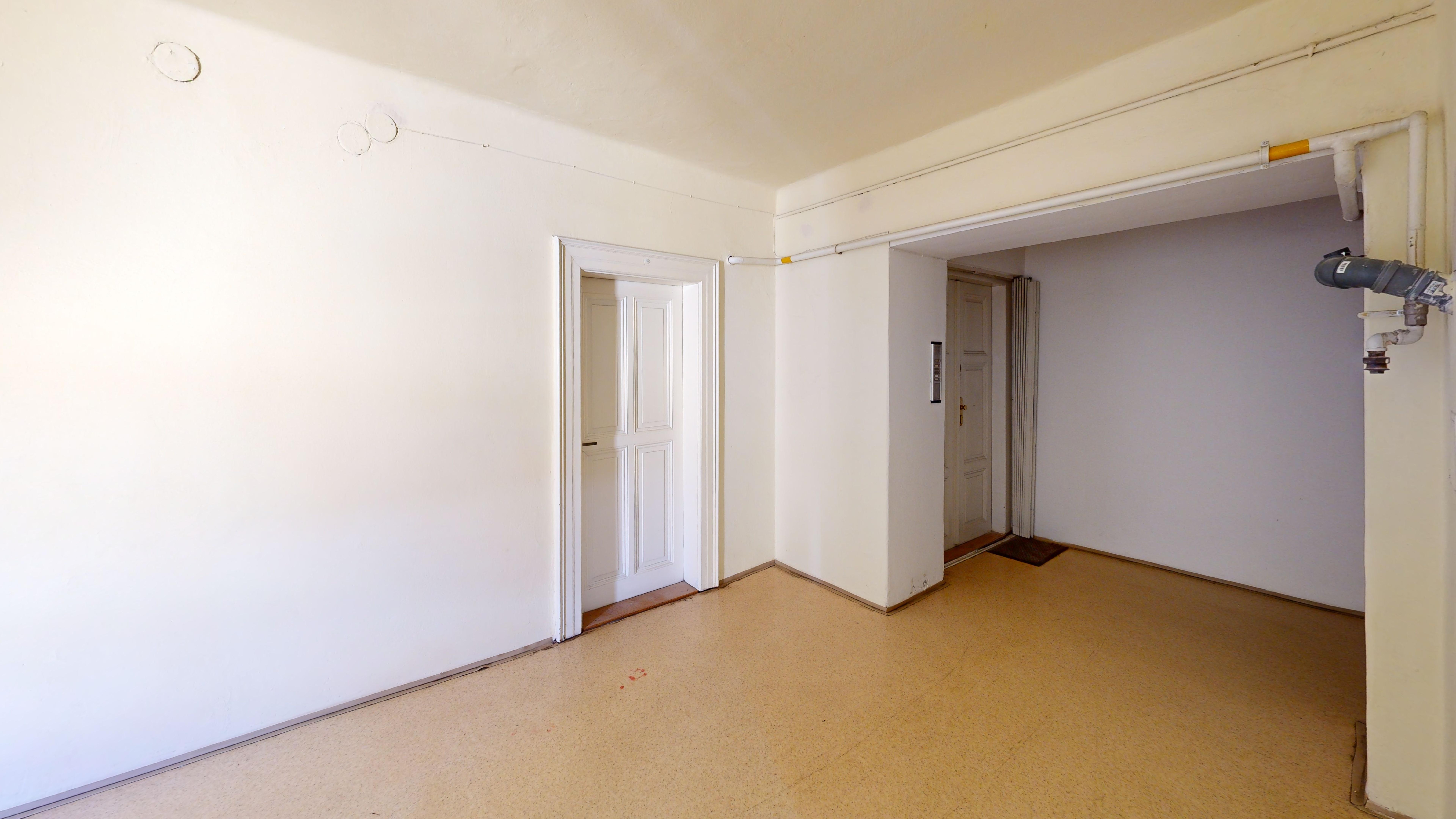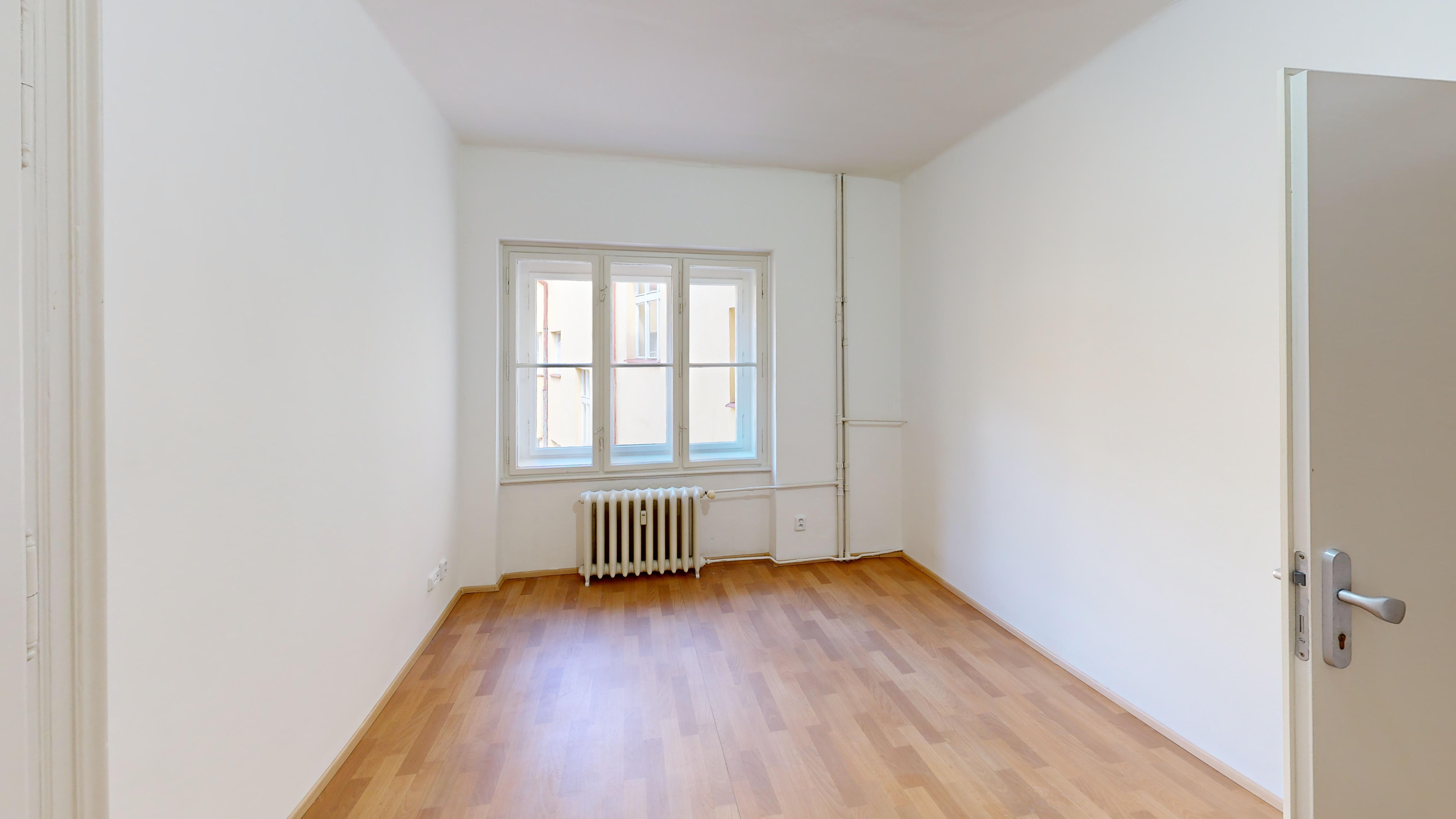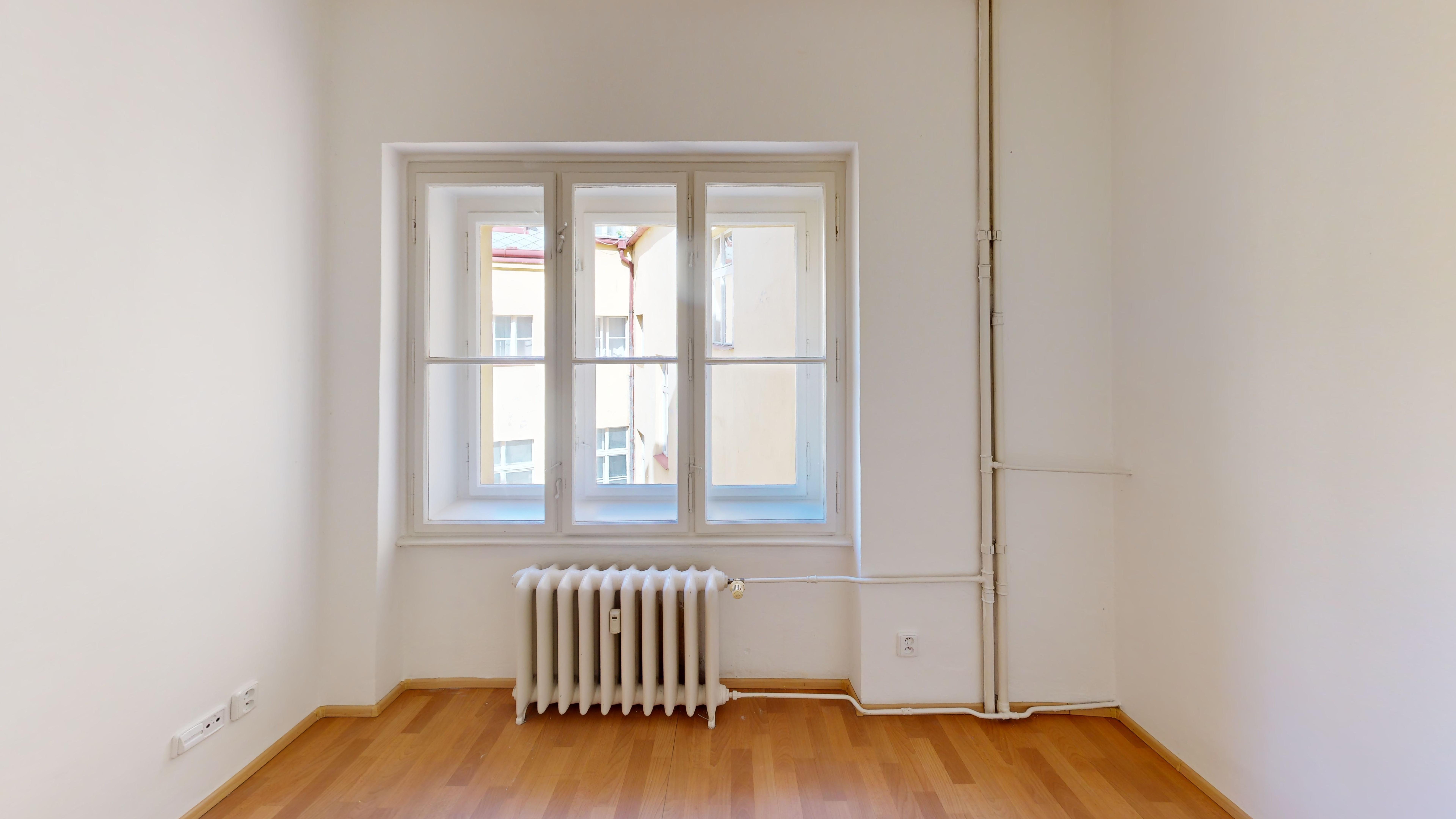 On behalf of the City of Prague, we offer for long-term rent a 2+kk apartment with a total area of 38 m2, located on the 4th floor of a historic building in the center of Prague 1, at Národní 365/43. The layout of the apartment consists of a walk-through room with a kitchenette, a separate bedroom, and a bathroom, see the floor plan and virtual tour. The toilet is located outside the apartment across the hall. The windows face the courtyard. The apartment is equipped with a kitchenette and an electric boiler for heating water. The building has an elevator. The rent does not include monthly fees of CZK 2,200 + electricity consumption. The property is located in the very center of Prague. The apartment is vacant and available for immediate rent. The premises cannot be offered for short-term rentals or rented to third parties.